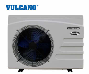 Bomba de calor para climatizar piscinas POOL-INVERTER 25 con intercambiador de titanio, equipo eléctrico de 230V – 31.400 BTU (9.2kW). Las bombas de calor Vulcano con Tecnología INVERTER son equipos silenciosos que gracias a su COP promedio de 8.6 reducen a la mitad el costo de funcionamiento del equipo.