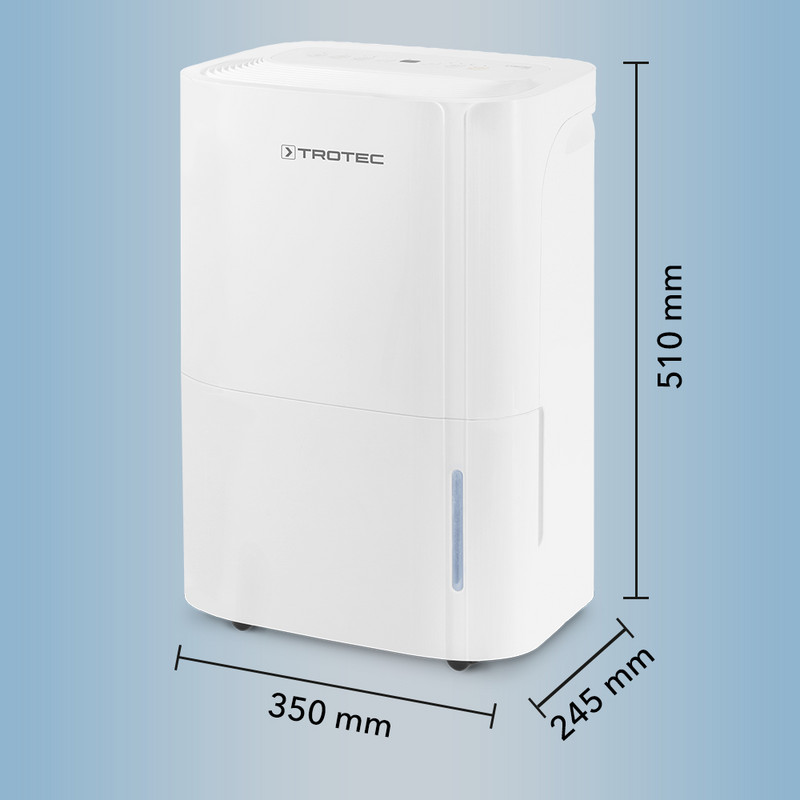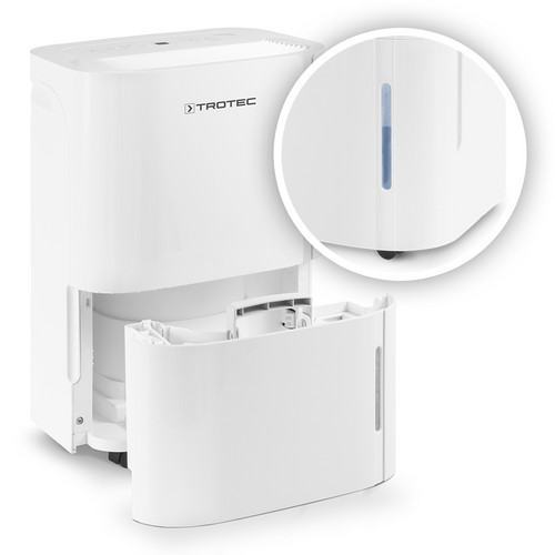 Deshumidificador Trotec, para espacios de hasta 31 m2 o 78 m3, efectivo y simple, deshumidifica en funcion de la temperatura, capacidad maxima de deshumidificación 16lt / 24H, funcion de reinicio automático, deposito de agua con cacidad para 3 lt, temporizador.